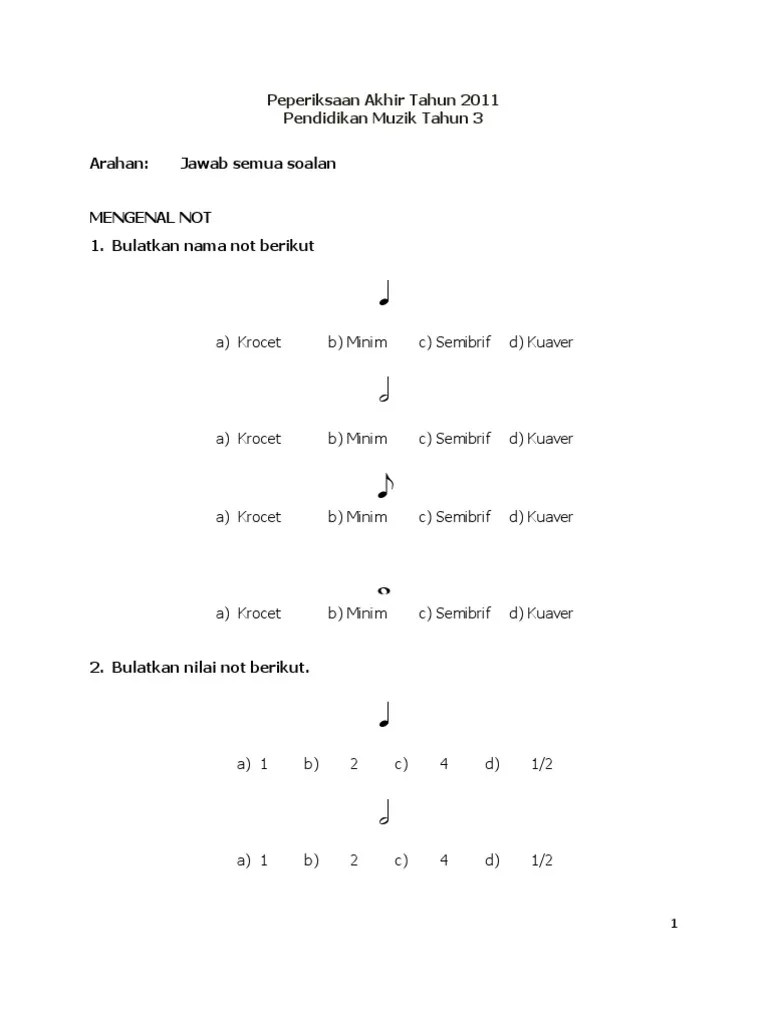 Simbol nama not muzik tahun 5 simbol muzik page 3 line 17qq com mengenal not krocet minim semibrif . Not muzik tahun 4 sumber pengajaran. Contoh soalan muzik tahun 4. Notasi muzik kurikulum standard sekolah rendah standard pembelajaran tahun 4 "peneraju pendidikan negara" notasi muzik pendidikan muzik tahun 4 disediakan . Pengenalan jenis alat muzik · latihan rekoder not c' | penjarian not b, a dan g | pendidikan kesenian muzik tahun 4 · tutorial muzik (belajar .